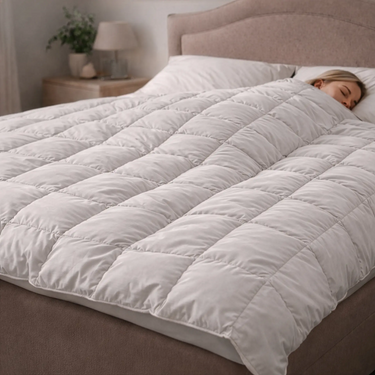Onder het eiderdons dekbed voelt warmte niet als iets dat op je ligt, maar als iets dat je omringt. Zodra je onder het dekbed kruipt, sluit het zich zacht en vanzelf om je heen. De warmte verdeelt zich gelijkmatig over je lichaam, zonder druk, zonder opgesloten gevoel.