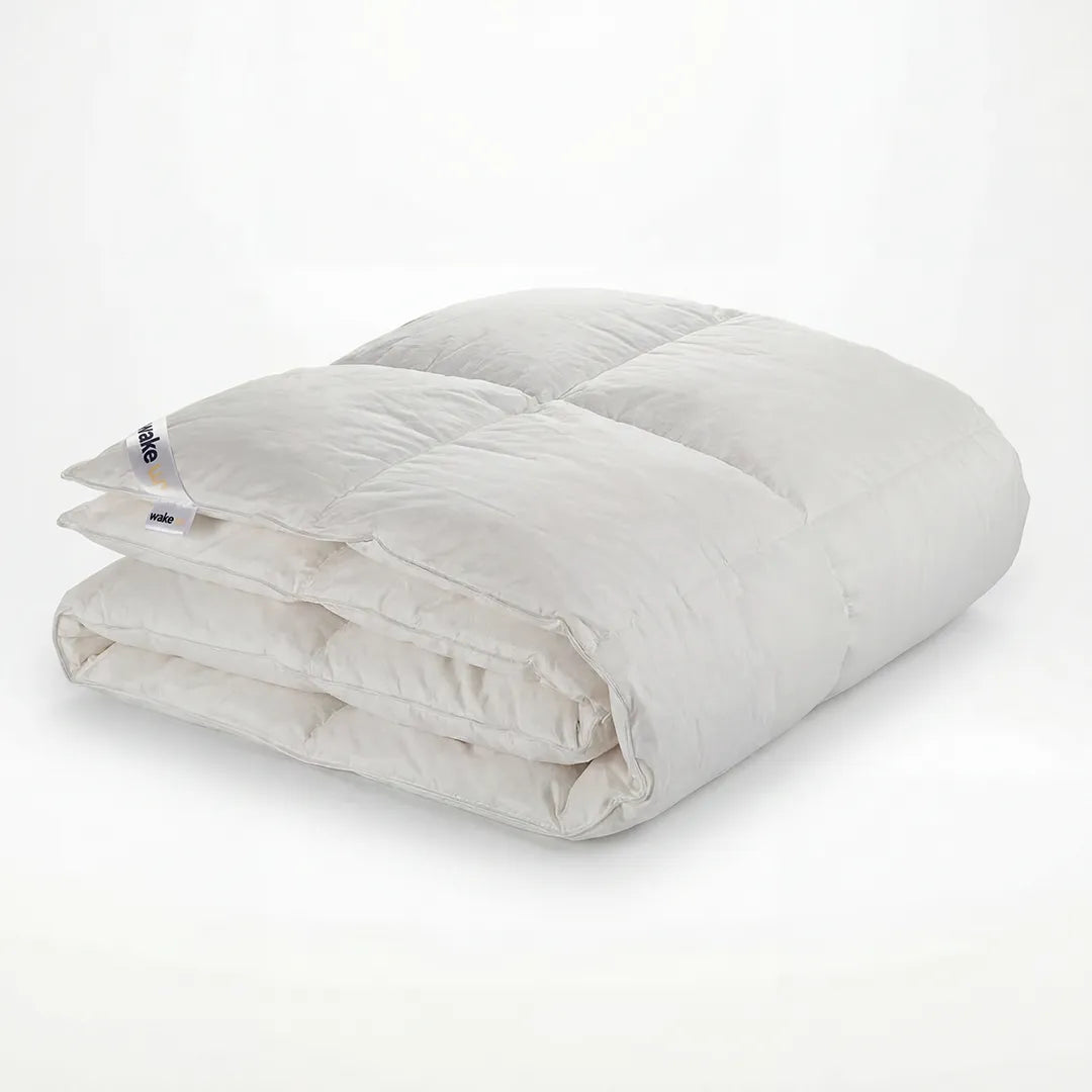 Het Wake Up 15/85 winterdekbed is gevuld met 15% eendendons en 85% eendenveren. Een volle vulling voor wie houdt van een behaaglijk, zwaarder dekbed. Gemaakt in Nederland, met een knisperende tijk van dichtgeweven percal katoen (NM70). Kies voor het winterdekbed als je het snel koud hebt, of voor het 4-seizoenen dekbed met twee delen voor elk moment van het jaar. Comfort, kwaliteit en eerlijk vakmanschap — voor een heerlijk warme nacht.