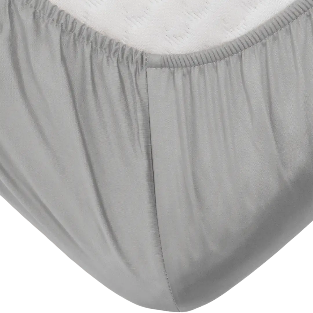 The Silver Grey 100% Cotton Sateen Topper Fitted Sheet features a corner height of