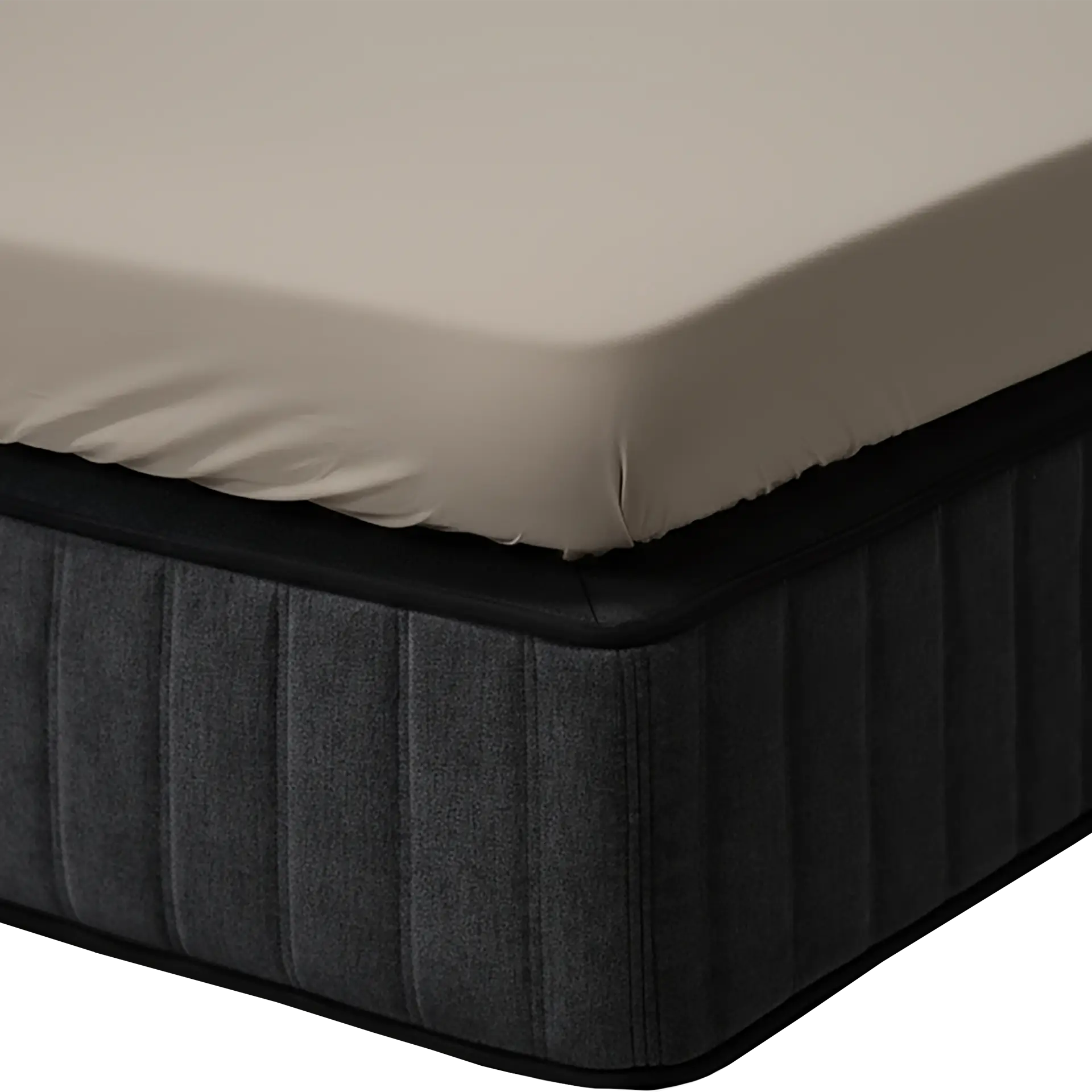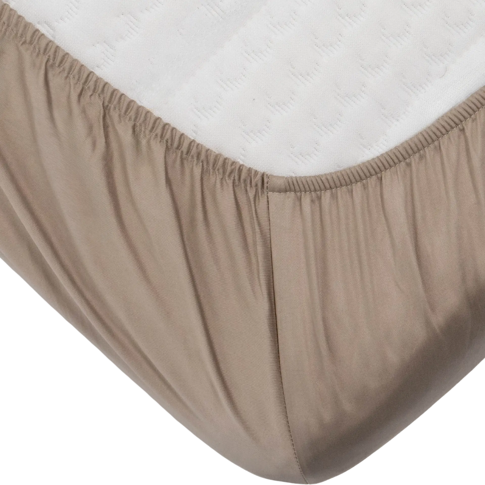 The Taupe 100% Cotton Sateen Topper Fitted Sheet features a corner height of 20 cm and is designed to fit a topper between 7 cm and 13 cm high